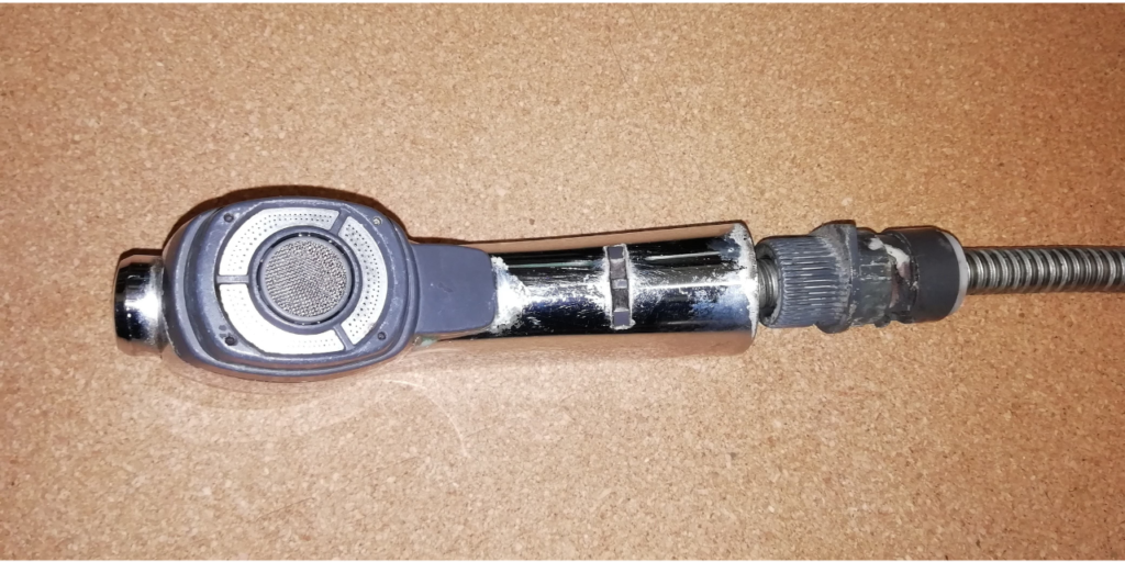 外したシャワーヘッド。年季入ってますね~。13年使いました。