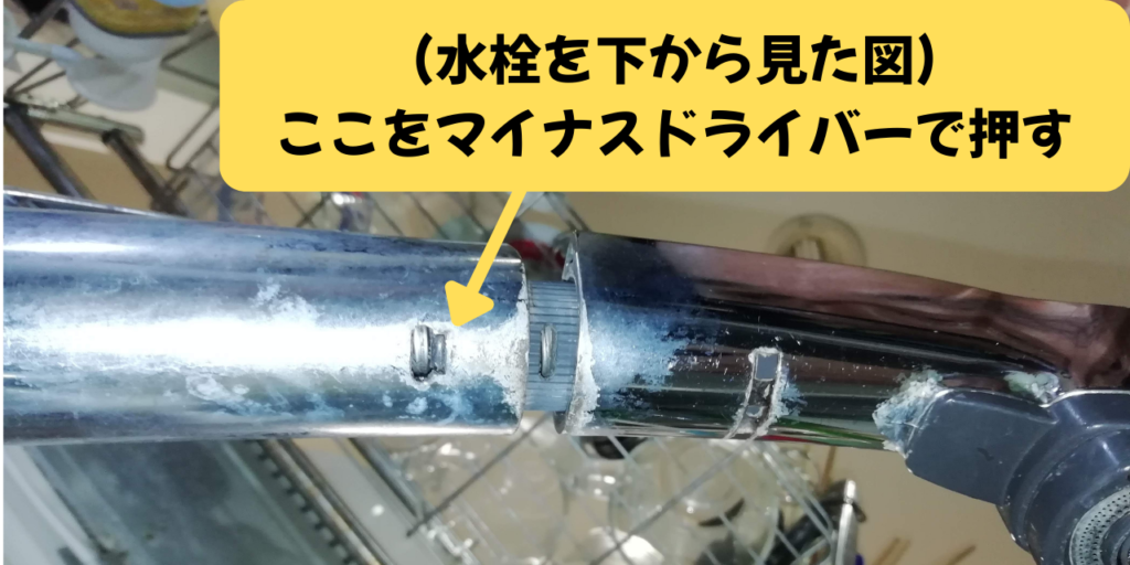 ここを通り抜けたら、水栓とヘッドがドッキングする部分のパーツも外す必要があります。